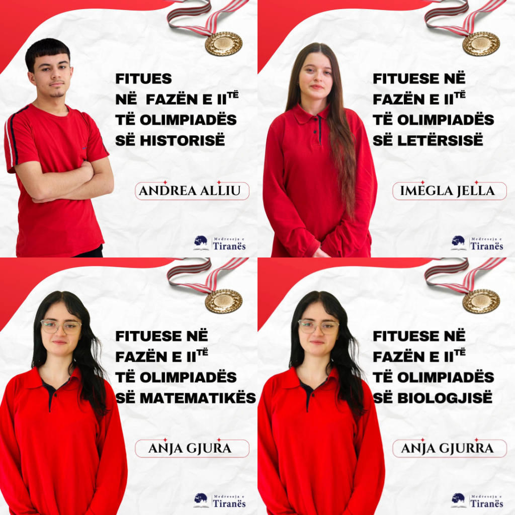 Me shumë kënaqësi ndajmë arritjet e nxënësve tanë në fazën e dytë të olimpiadave kombëtare: 📚 Andrea Alliu – Fitues për në fazën e II-të të Olimpiadës së Historisë🔢 Anja Gjura – Fituese për në fazën e II-të të Olimpiadës së Matematikës🧬 Anja Gjura – Fituese për në fazën e II-të të Olimpiadës së e […]